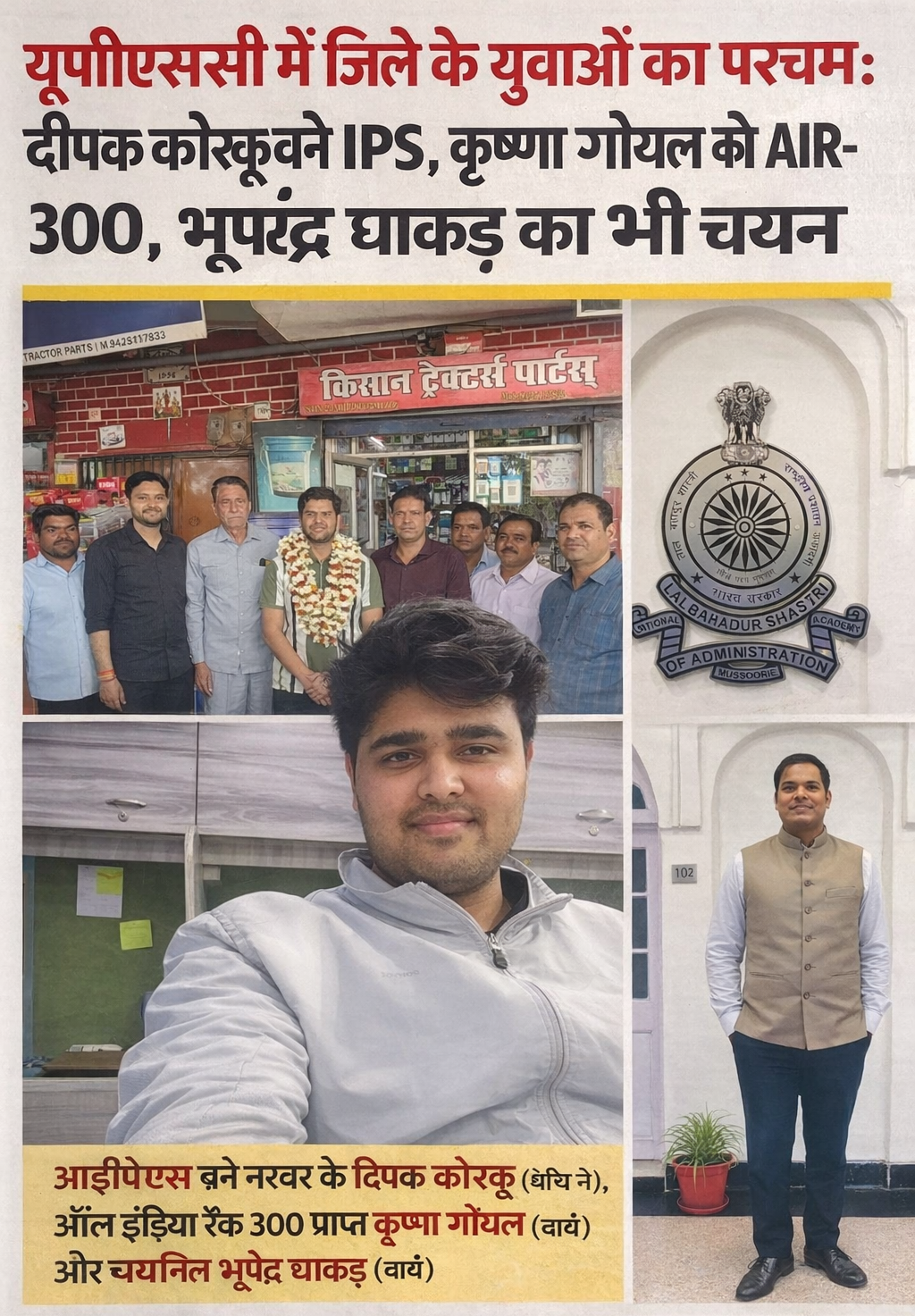 इसके अलावा कोलारस विधानसभा क्षेत्र के धंधेरा ग्राम निवासी भूपेंद्र धाकड़, पुत्र महेश कुमार धाकड़ (पूर्व सरपंच) का भी सिविल सेवा परीक्षा में चयन हुआ है। उनकी इस उपलब्धि से न केवल गांव बल्कि पूरे कोलारस क्षेत्र में खुशी का माहौल है।