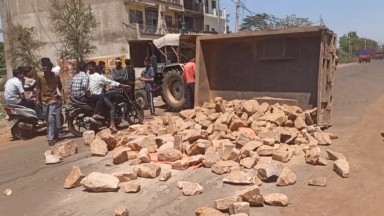 ए.बी. रोड पर पलटी पत्थरों से भरी ट्रॉली, जानलेवा गड्ढों से बढ़ रहे हादसे / Shivpuri News