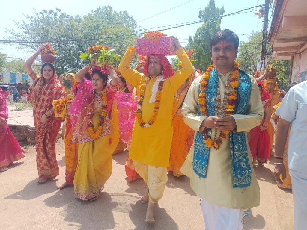 कलश यात्रा में बड़ी संख्या में महिलाएं सिर पर मंगल कलश धारण कर बैंड-बाजों और भक्ति गीतों के साथ शामिल हुईं। पूरे मार्ग को ध्वजाओं से सजाया गया, जिससे क्षेत्र भक्तिमय माहौल में सराबोर नजर आया।