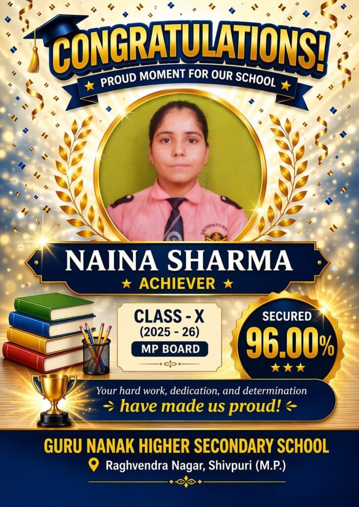 गुरु नानक हायर सेकेंडरी स्कूल का MP बोर्ड में शानदार प्रदर्शन, 10वीं-12वीं में छात्रों ने लहराया परचम / Shivpuri News
