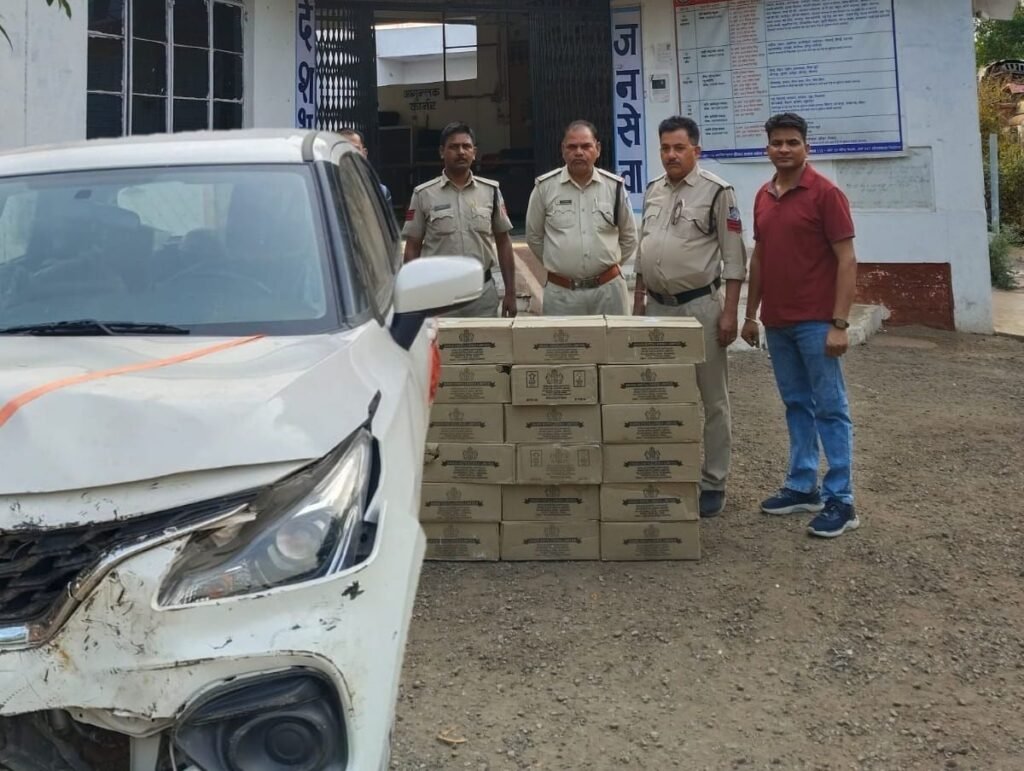 कार की तलाशी लेने पर बीच सीट और डिग्गी से 25 पेटी देशी प्लेन शराब बरामद हुई, जिसकी कीमत करीब 1 लाख 25 हजार रुपये है। साथ ही करीब 10 लाख रुपये कीमत की बलेनो कार भी जब्त की गई।