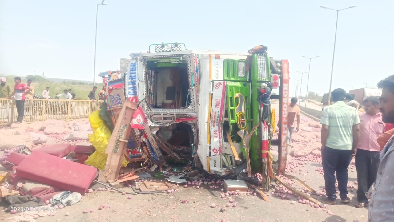 शिवपुरी-ग्वालियर फोरलेन हाईवे पर प्याज से भरा ट्रक पलटा, एक की मौत / Shivpuri News